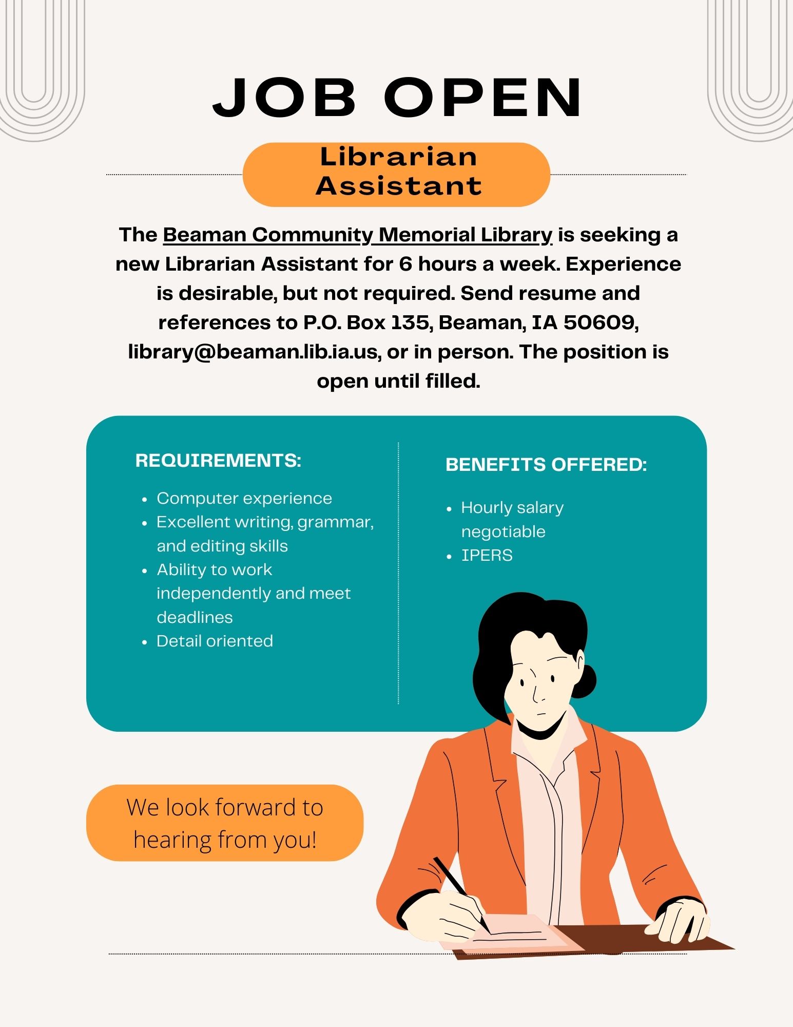 | Librarian Assistant needed.jpg | Librarian_Assistant_needed.jpg | 3/27/24 | 248.12 KB | |