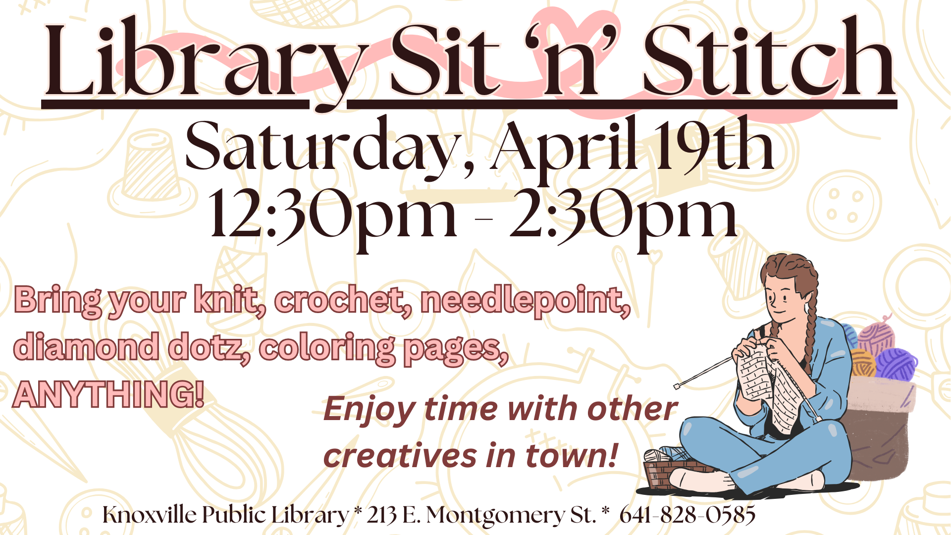 | Library Sit ‘n’ Stitch 419 (1200 x 468 px) (1).png | Library_Sit_n_Stitch_419_1200_x_468_px_1.png | 4/18/25 | 236.64 KB | |