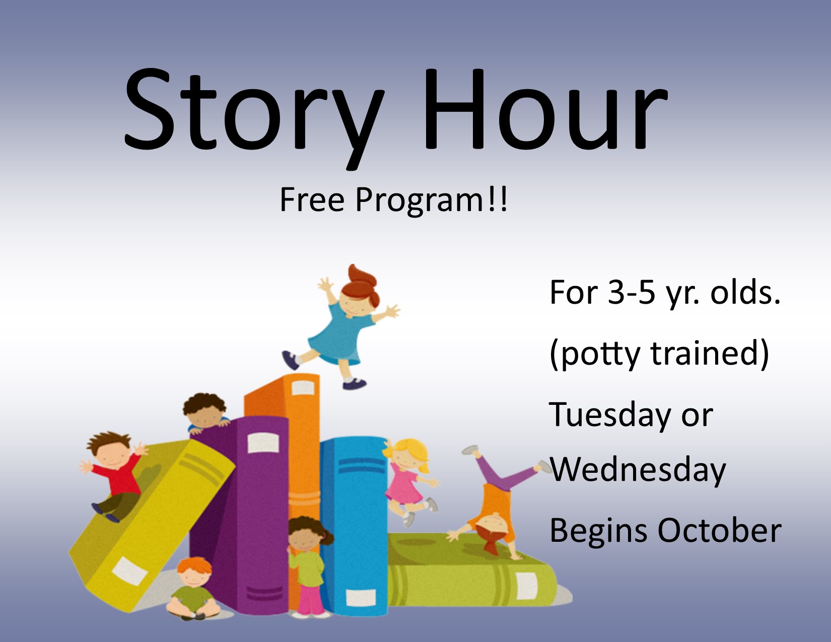 Registration is now open for the fall Children's Story Times. Baby and Me, for children ages 0-1, Toddler Time for… Read More