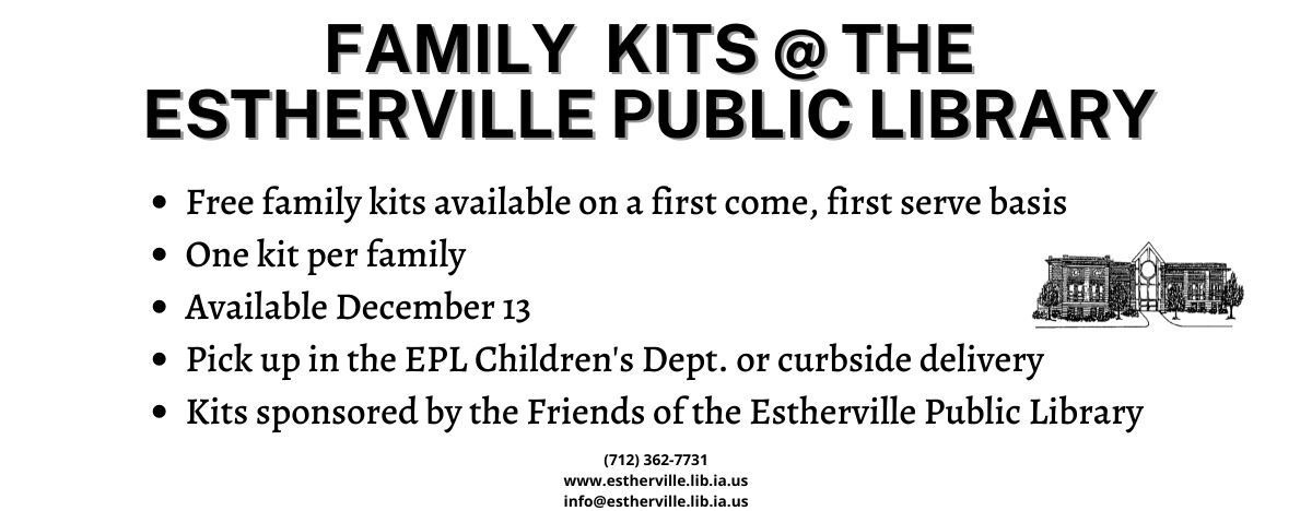 Dec Family Kits @ the estherville Public Library.jpg | Dec_Family_Kits_at_the_estherville_Public_Library.jpg | 11/16/21 | 80.76 KB | |