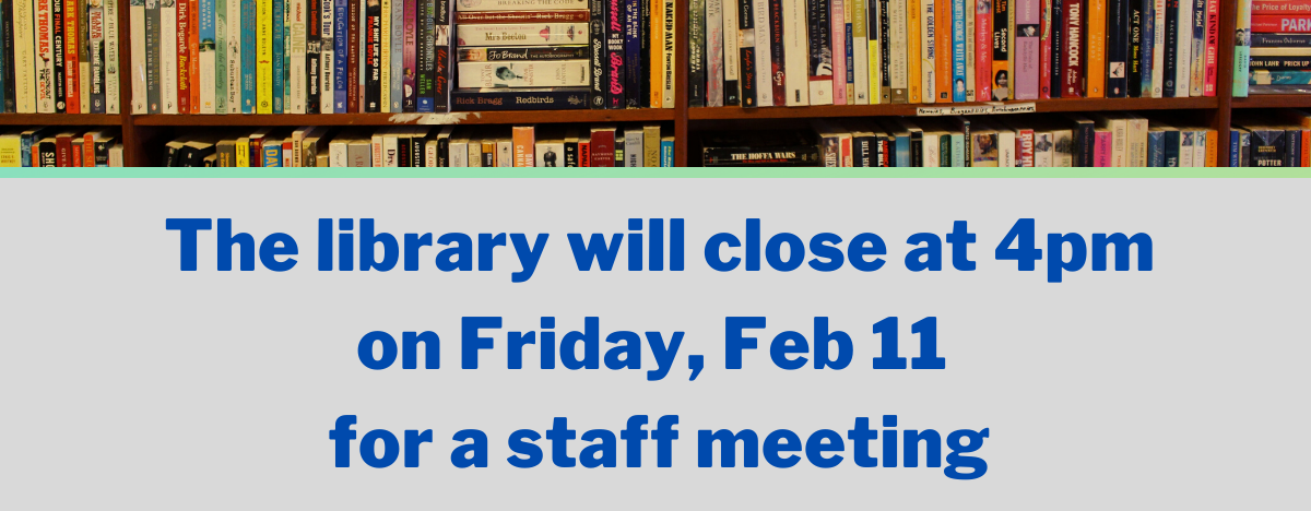 | The library will close at 4pm on Friday, Feb 11 for a staff meeting.png | The_library_will_close_at_4pm_on_Friday_Feb_11_for_a_staff_meeting.png | 2/9/22 | 430.29 KB | |