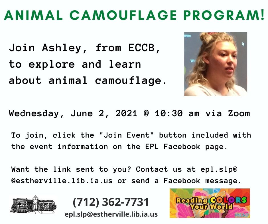 | Aninmal Camouflage Program w Ashley.jpg | Aninmal_Camouflage_Program_w_Ashley.jpg | 5/3/21 | 114.42 KB | |